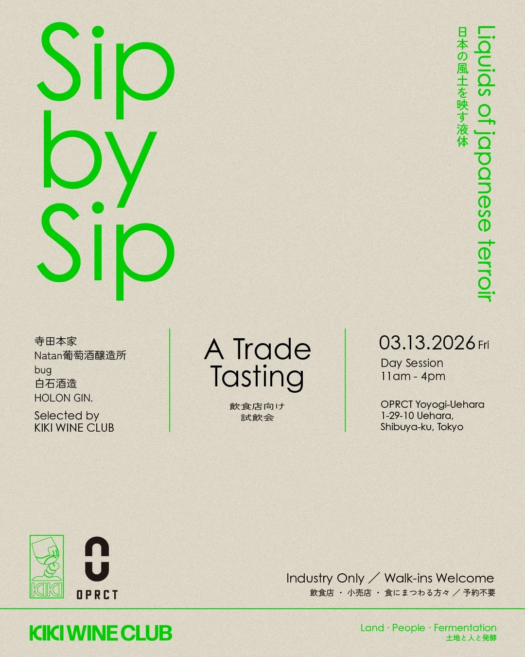 作品やつくり手の力が、最も発揮されるプラットフォームでありたいというOPRCTの想いと、KIKI WINE CLUBの姿勢が重なり、本イベントの共同開催が実現しました。